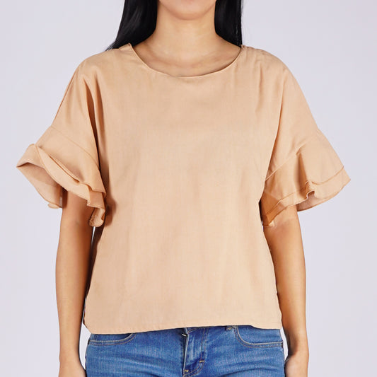 RRJ Ladies Basic Woven Shirt Regular Fitting Linen Fabric 164909 (Beige)