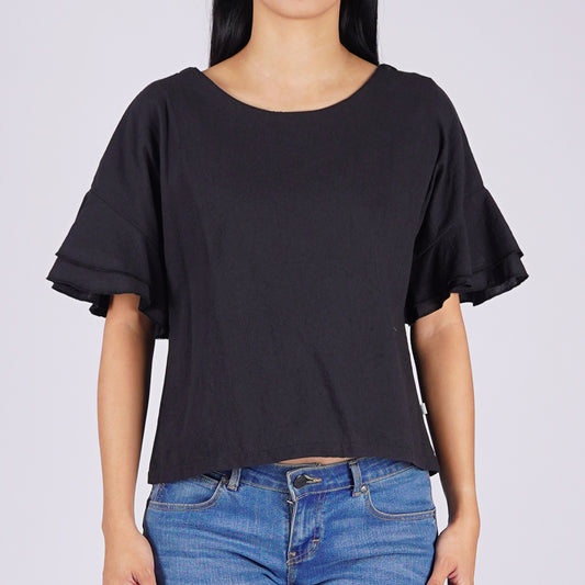 RRJ Ladies Basic Woven Shirt Regular Fitting Linen Fabric 164909 (Black)