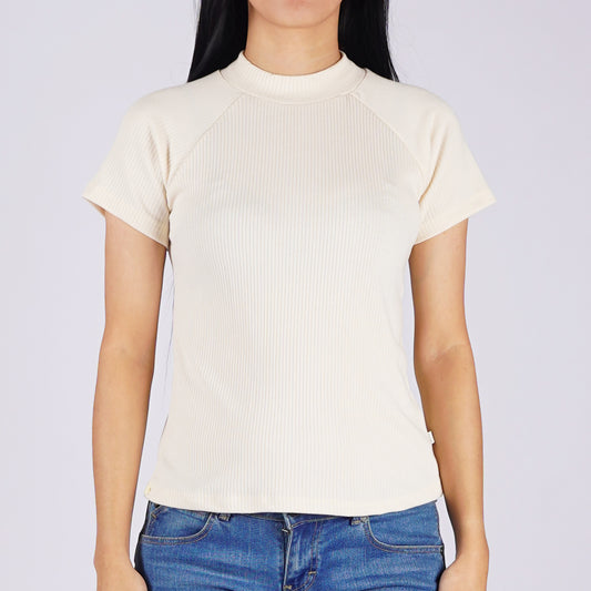 RRJ Ladies Basic Tees Regular Fitting Ribbed Fabric 153445 (Beige)