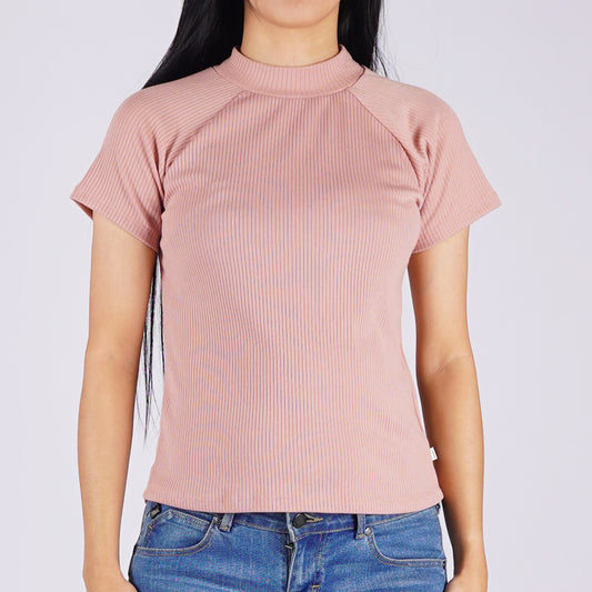 RRJ Ladies Basic Tees Regular Fitting Ribbed Fabric 153445 (Pink)