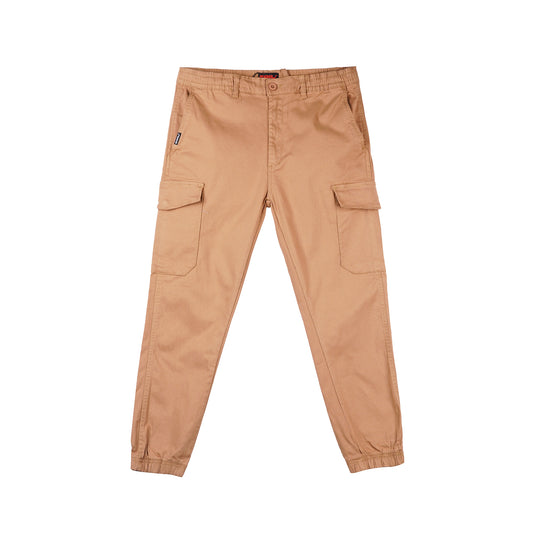 RRJ Men's Basic Non-Denim Cargo Pants Mid-Rise Fitting Rinse Wash Fabric 170274 (Brown)