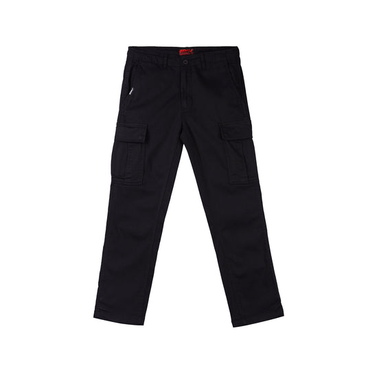 RRJ Men's Basic Non-Denim Cargo Pants Mid-Rise Fitting Rinse Wash Fabric 170375 (Black)