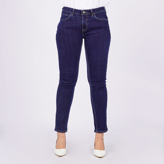 RRJ Ladies Basic Denim Pants Mid-Rise Slim Fitting Enzyme Wash Fabric 166499 (Dark Shade)