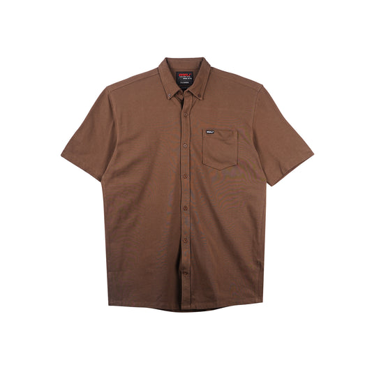 RRJ Men's Basic Woven Shirt Regular Fitting Dique Fabric 159442 (Choco Brown)