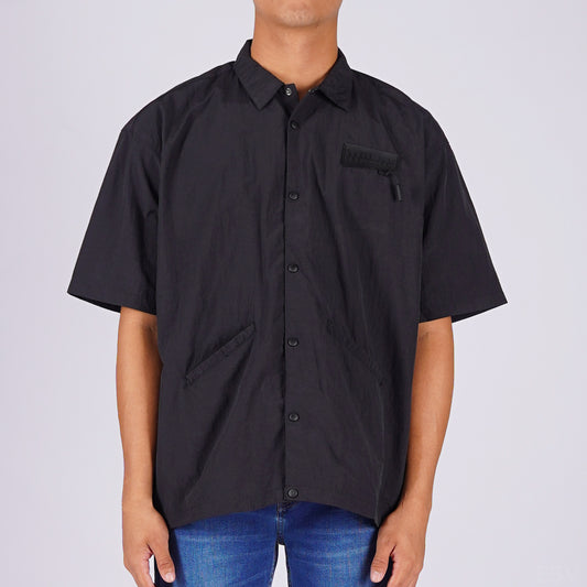RRJ Men's Basic Woven Shirt Boxy Fitting Taslan Fabric 160614 (Black)