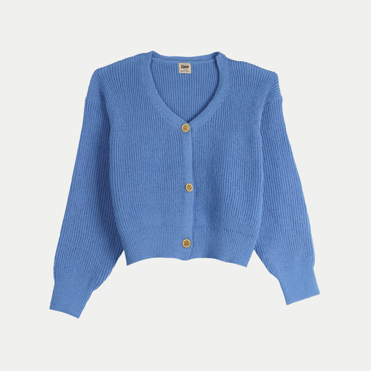 Stylistic Mr. Lee Ladies Basic Button Down Jacket for Women Knitted Fabric Trendy Fashion High Quality Apparel Comfortable Casual Jacket for Women Boxy Fit 116674 (Blue)