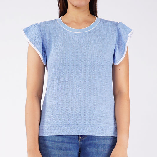 RRJ Ladies Basic Tees Regular Fitting Ribbed Fabric 153445 (Blue)