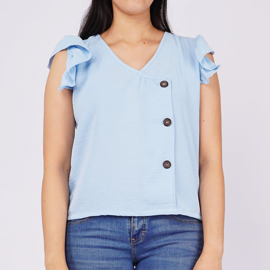 Petrol Ladies Basic Woven Boxy Fitting Woven Fabric 157723 (Smoke Blue)