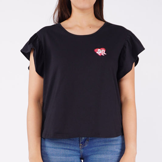 RRJ x Looney Tunes Ladies Basic Tees Boxy Fitting CVC Jersey Fabric 167289-U (Black)
