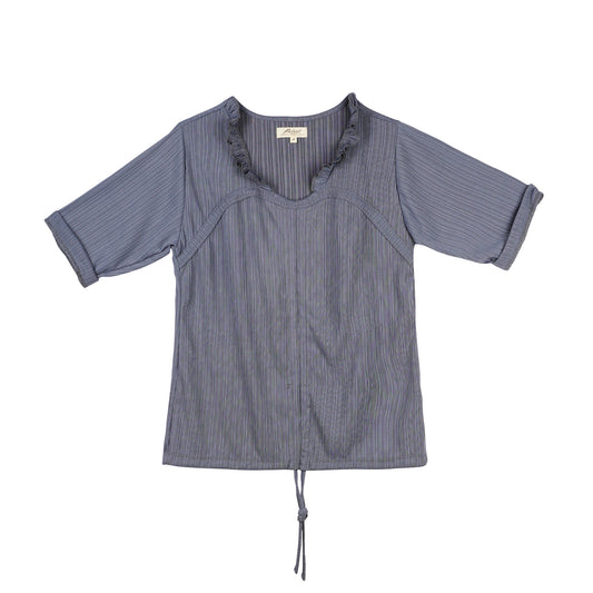 RRJ Basic Tees for Ladies Slim Fitting Ribbed Fabric Trendy fashion Casual Top Gray Tees for Ladies 141023 (Gray)