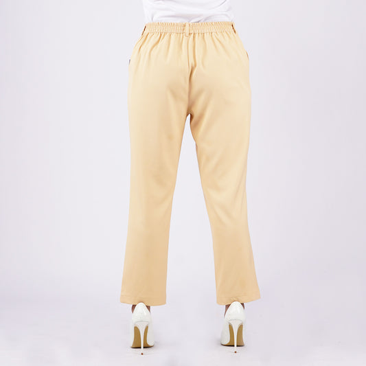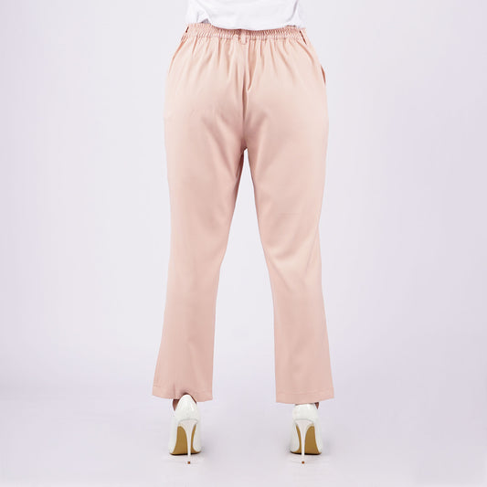 RRJ Ladies Basic Non-Denim Colored Trouser Pants Mid-Waist Rinse Wash Fabric 161166-U (Peach)