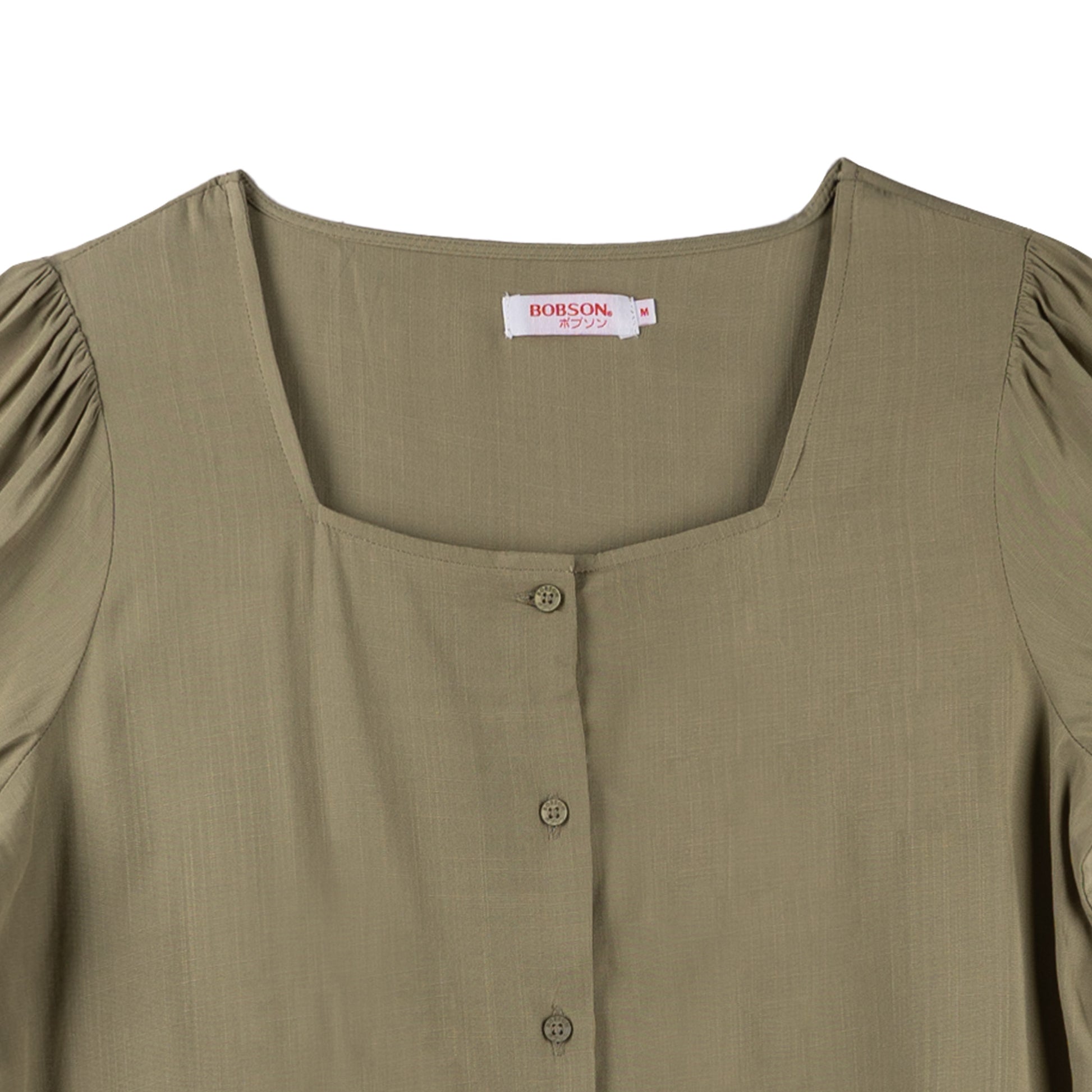 Product Details: Bobson Japanese Ladies Basic Woven Shirt Boxy Fit 151852 (Light Green)