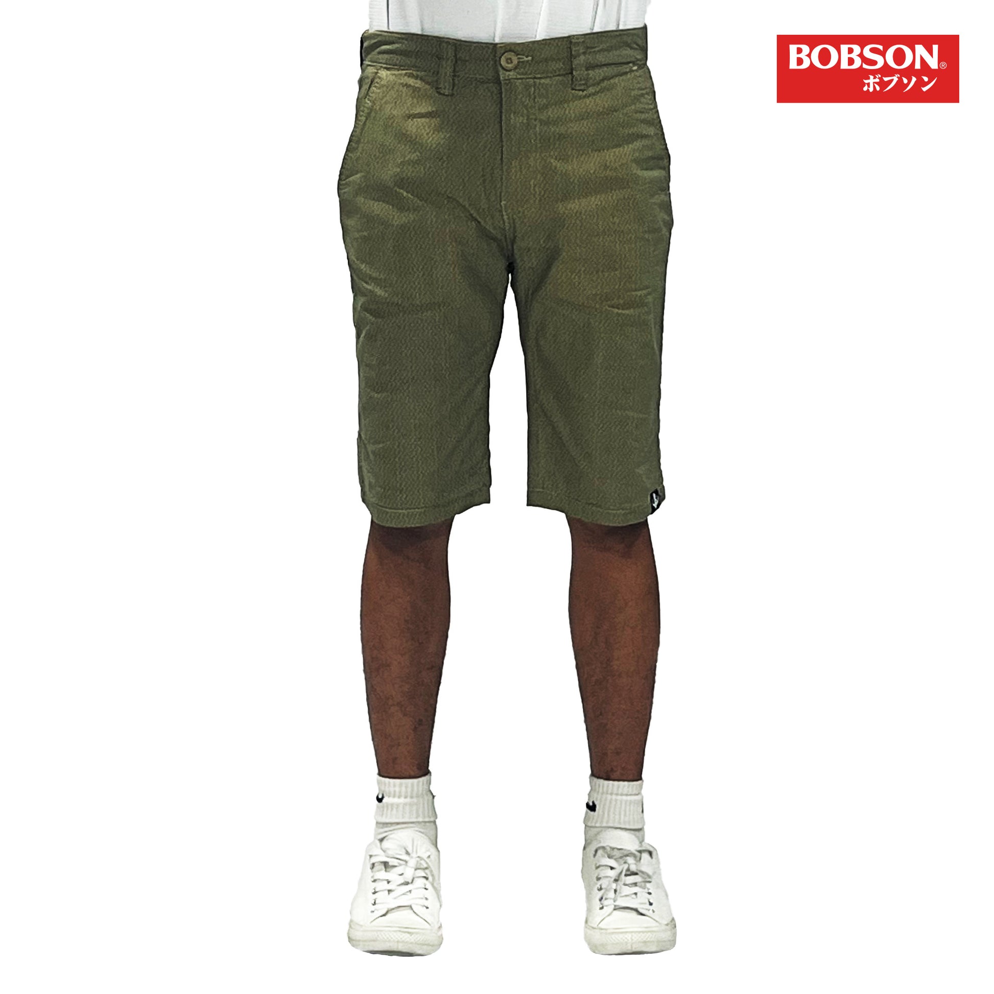 Bobson Japanese Men's Basic Non-Denim Reversible Short Mid Waist 172311 (Black Khaki)