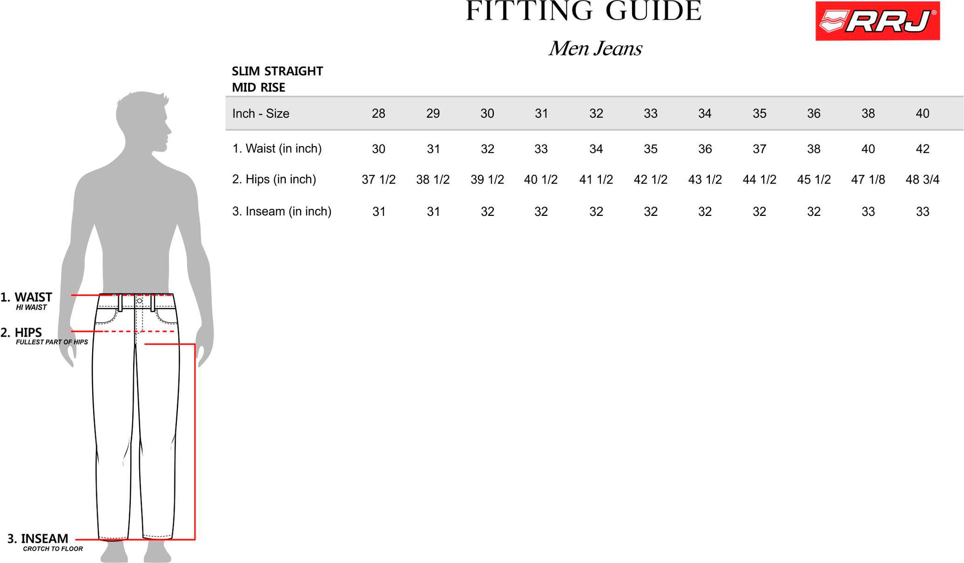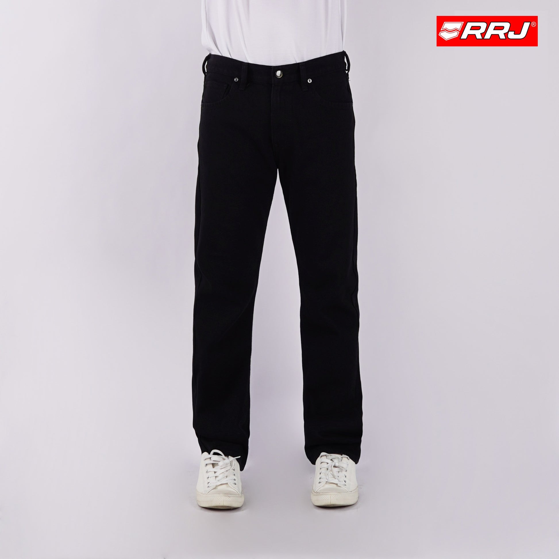 RRJ Men's Basic Denim Pants Slim Straight Mid-Rise 178072 (Black)
