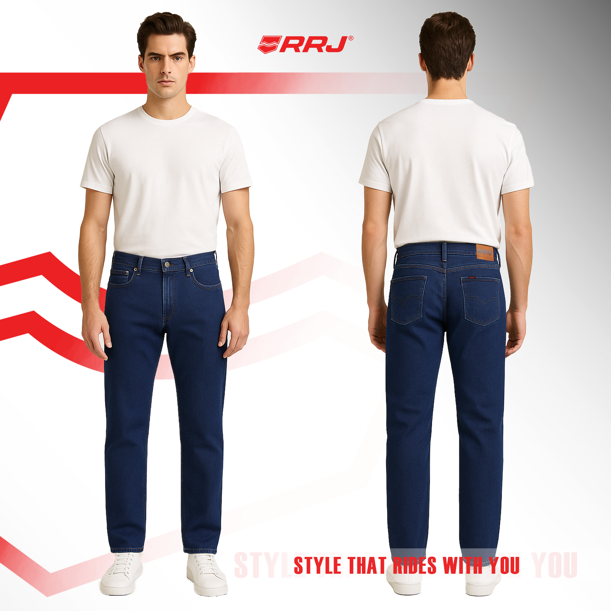 RRJ Men's Basic Denim Slim Straight Mid-Rise Fitting 194021-U (Dark Shade)