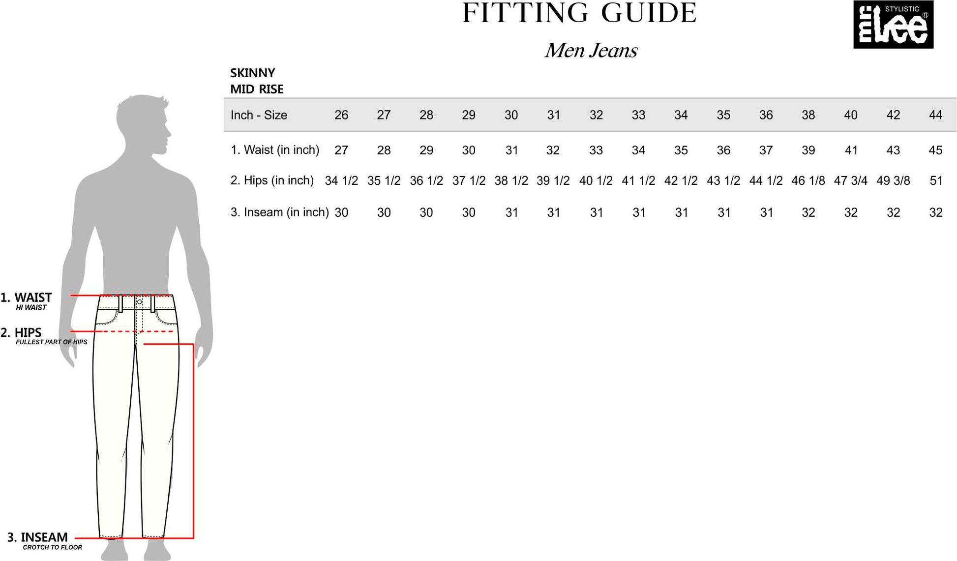 Product Details: Stylistic Mr. Lee Men's Basic Denim Pants Skinny Mid Waist 179602 (Dark Shade)